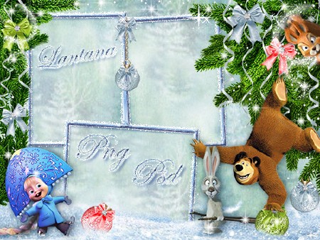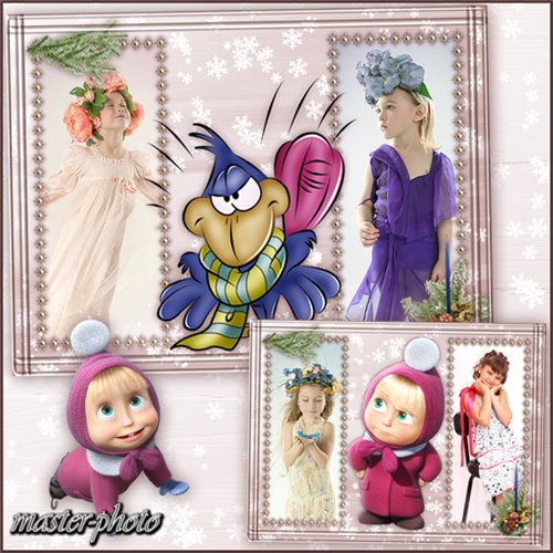 Многослойная рамочка для оформления детских новогодних фото - Зимняя прогулка Маши и Медведя