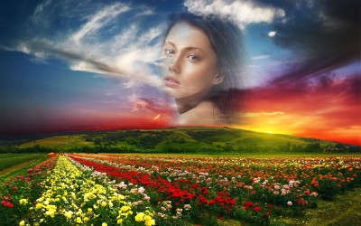 » Шаблон для фотошопа - девушка с цветами