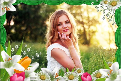 Шаблон для фотошопа - девушка с цветами
