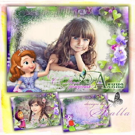 Рамка для фотошопа – Принцесса София, Лунтик и Маша поздравляют тебя! PSD, 8 PNG | 4200 x 2969 | 300 dpi | 280 Mb Есть варианты PNG без надписи. Текст редактируется. Есть английский вариант надписи. Автор: Sialla