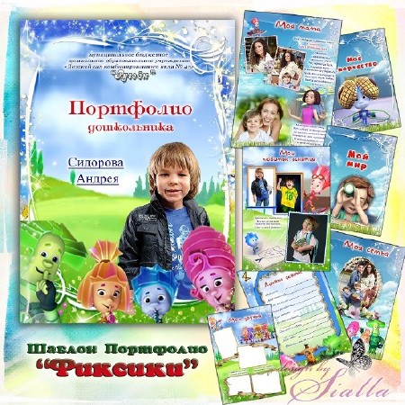 Шаблон Портфолио для детского сада с героями мультфильма Фиксики, со стихами