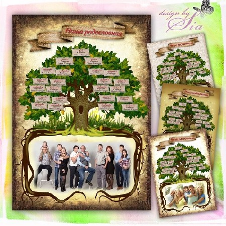Рамка для семейного фото – Наша родословная PSD, 5 PNG | 2480 x 3508 | 300 dpi | 255 Mb PNG варианты с разными фонами. Текст редактируется. Количество родственников можно изменить. Автор: Sia